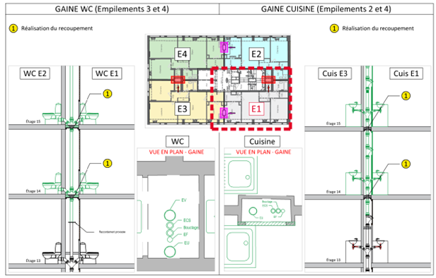 - Travaux de remplacement des colonnes d’eau froide et d’eau chaude ainsi que des colonnes d’eaux usées et d’eaux vannes dans les gaines collectives